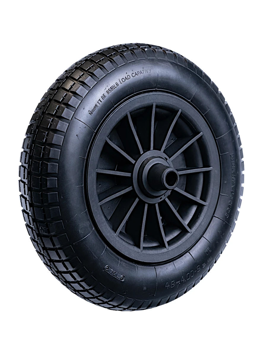 RUEDA INFLABLE DIAM. 400mm ANCHO 95mm EJE 16,5mm 2 SEPARADORES LLANTA DE PVC NEGRA – 423